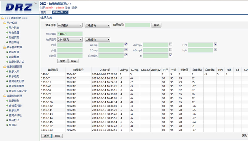 • 軸承組配管理:管理軸承組配的整個過程,包括軸承入庫,軸承組配,軸承出庫等