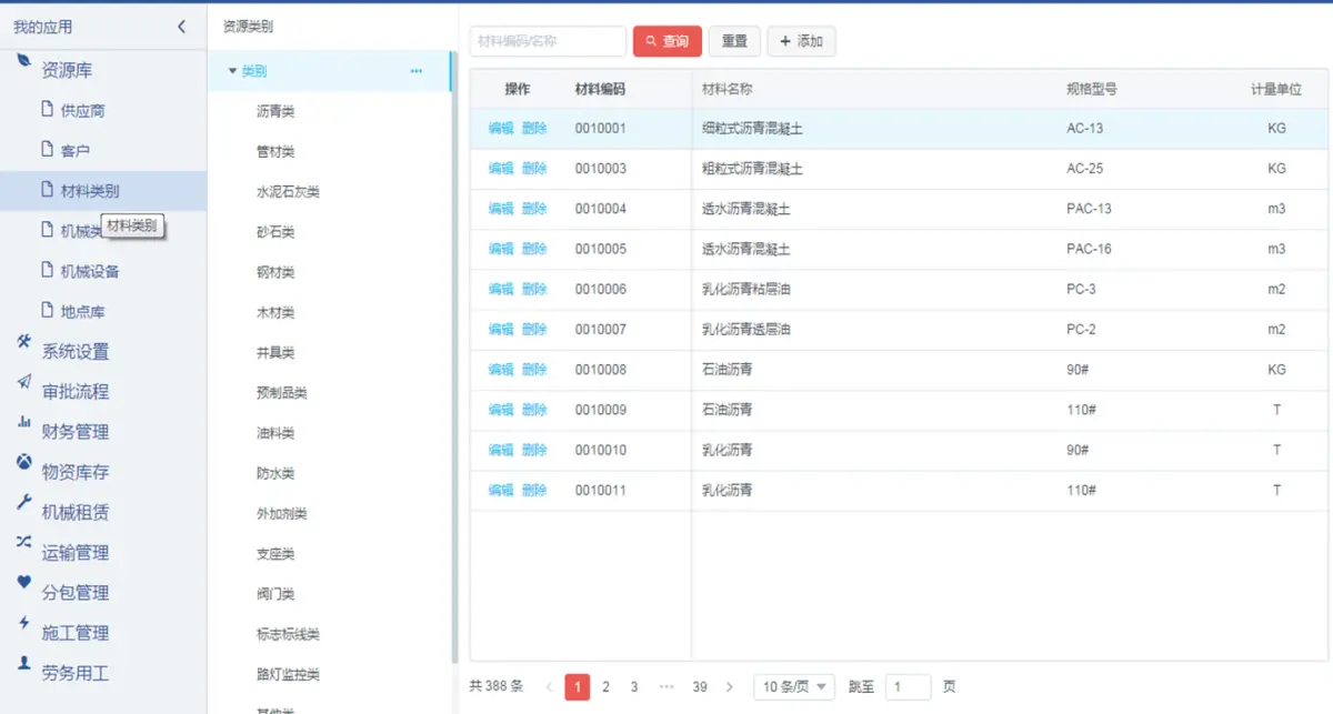 資源庫:供應商、客戶、材料類別、機械類別、機械設備等